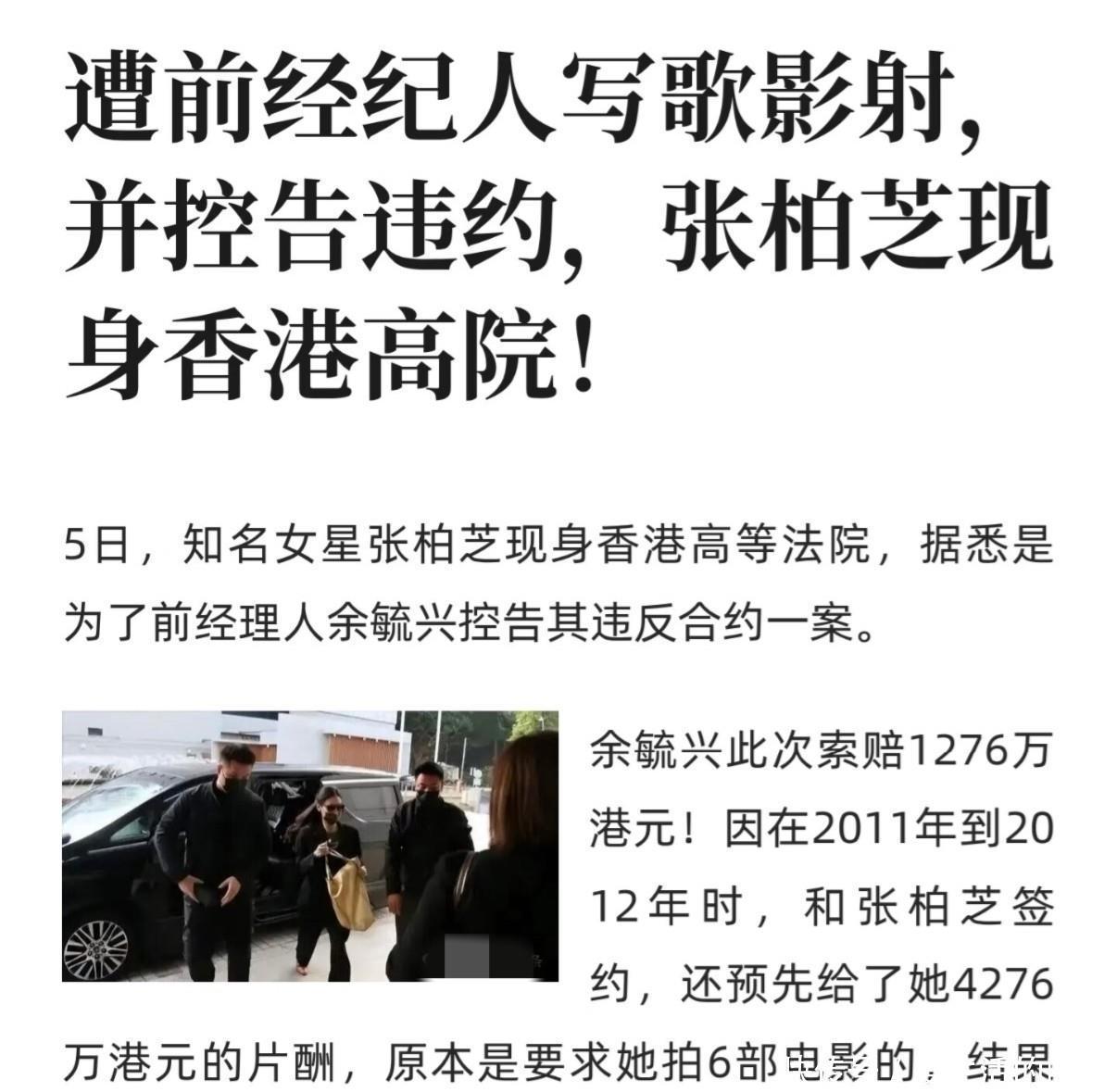 然而,顺风顺水了一年的张柏芝,近日却陷入了一场官司,她遭前经理人余毓兴控告违反合约,索赔1276万元,被弄得心力交瘁,两度出庭引起了很大的关注。
