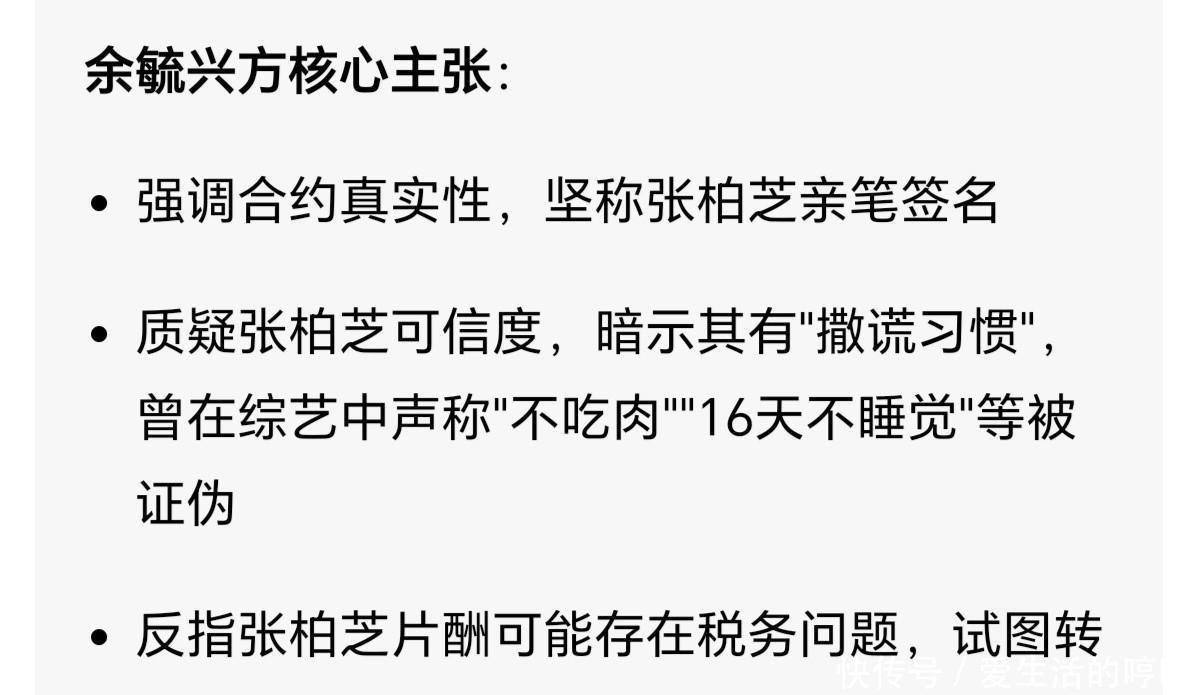 而余毓兴这边则强调合约真实性,合约上有张柏芝的亲笔签名,另外余毓兴还暗示张柏芝有“撒谎的习惯”。