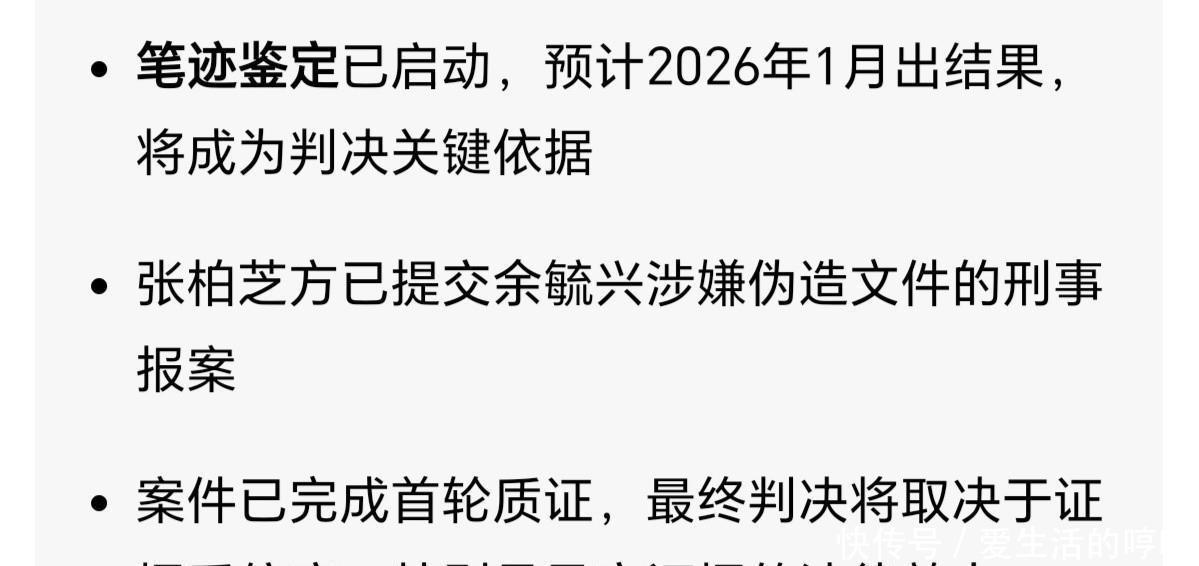 目前,笔迹鉴定已经启动,预计明年1月份可以出结果,这也成为了判决的关键证据。而余毓兴则面临涉嫌伪造文件的刑事案件指控。